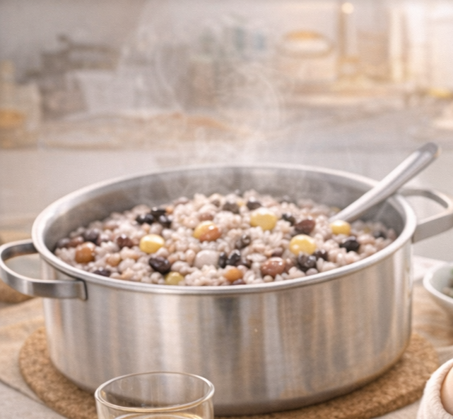 1. 쫀득함의 핵심, 곡물 불리기와 팥 삶기