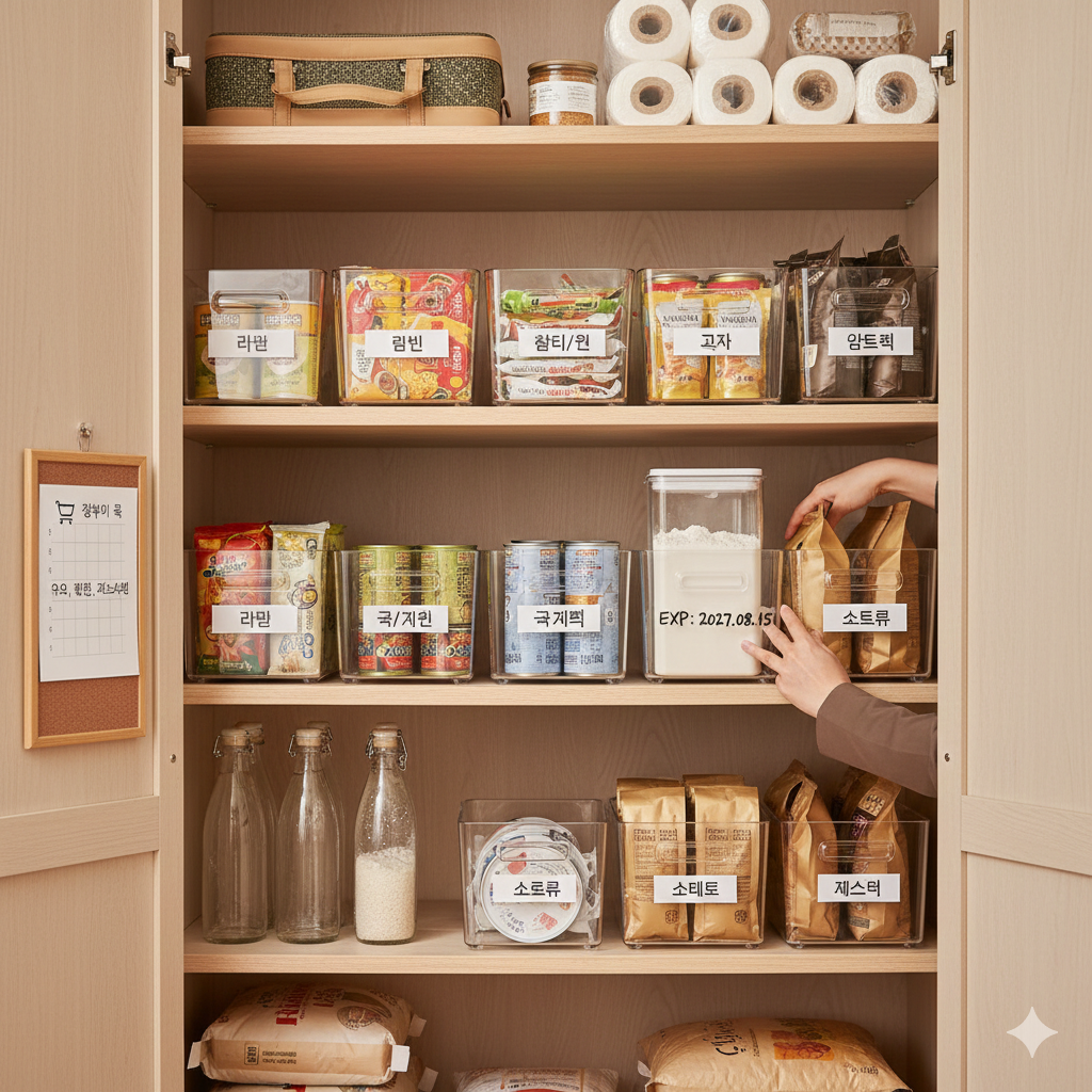 [매뉴얼 No.04] 팬트리 블랙홀 탈출! 유통기한 놓치지 않는 '선입선출' 수납법